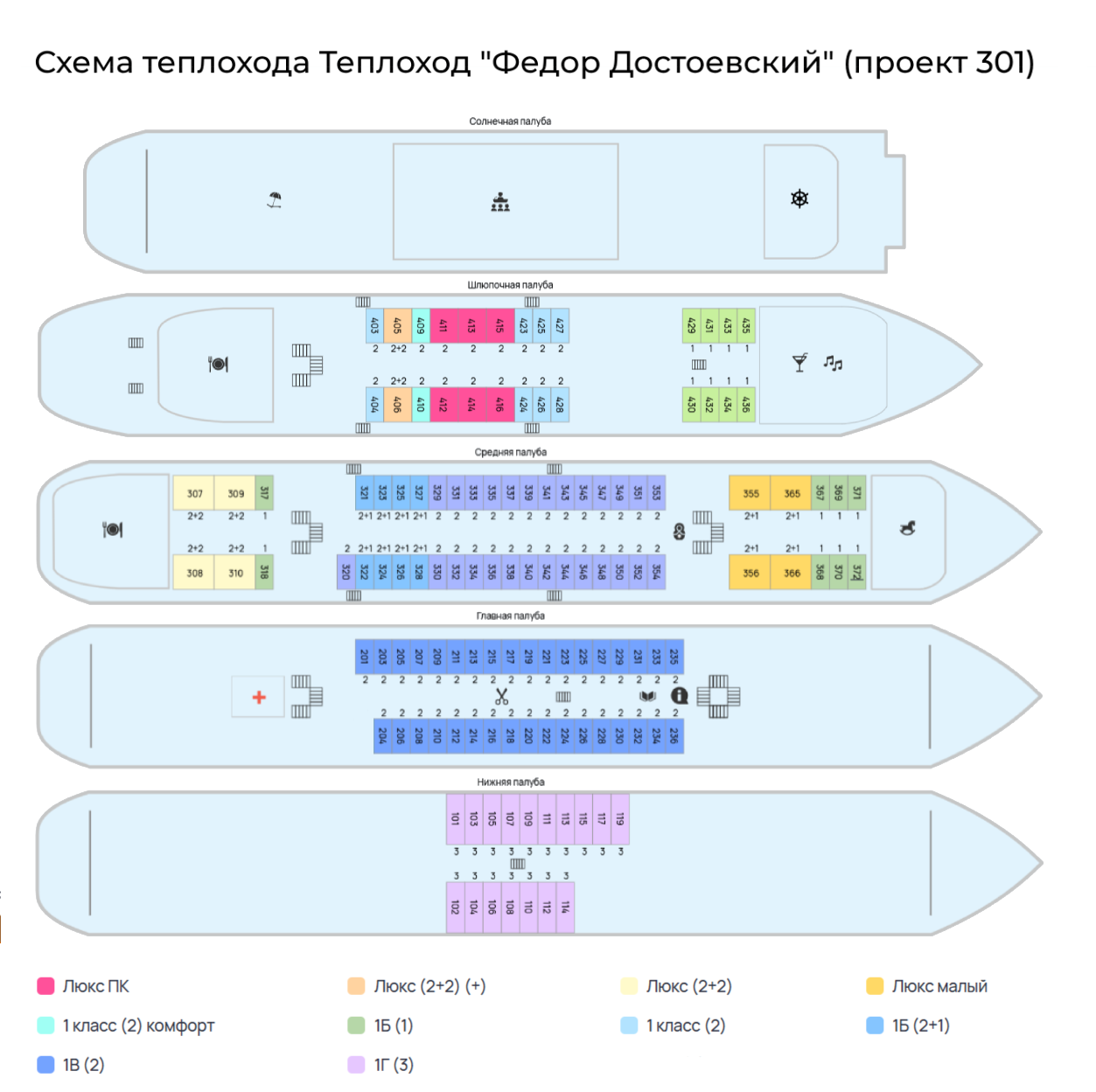 Тип каюты Размещение Базовый тариф question-icon Расширенный тариф question-icon
