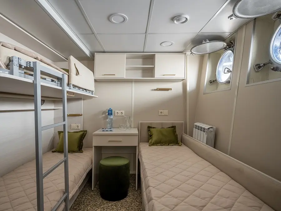 - Возможно размещение третьего человека на дополнительном спальном месте верхнего расположения (складная двухъярусная кровать-трансформер).