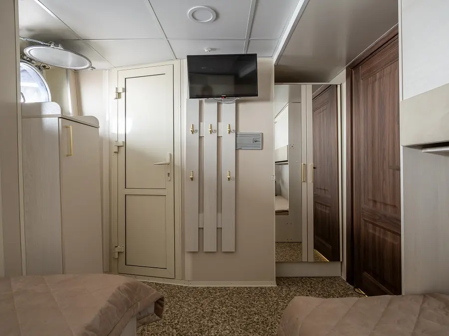 - Площадь каюты ≈ 12,4 м² (включая балкон ≈ 3 м²).