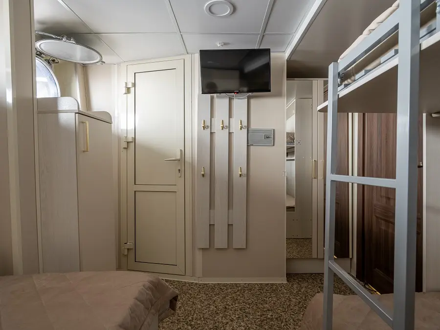 - 15% - дети до 14 лет. Предоставляется при размещении в стандартных каютах, где места продаются по полной стоимости без дополнительных скидок (за верхнее или за дополнительное место). Скидка не распространяется на одноместные каюты, каюты категории «ПК», «Полулюкс» и «Люкс».
