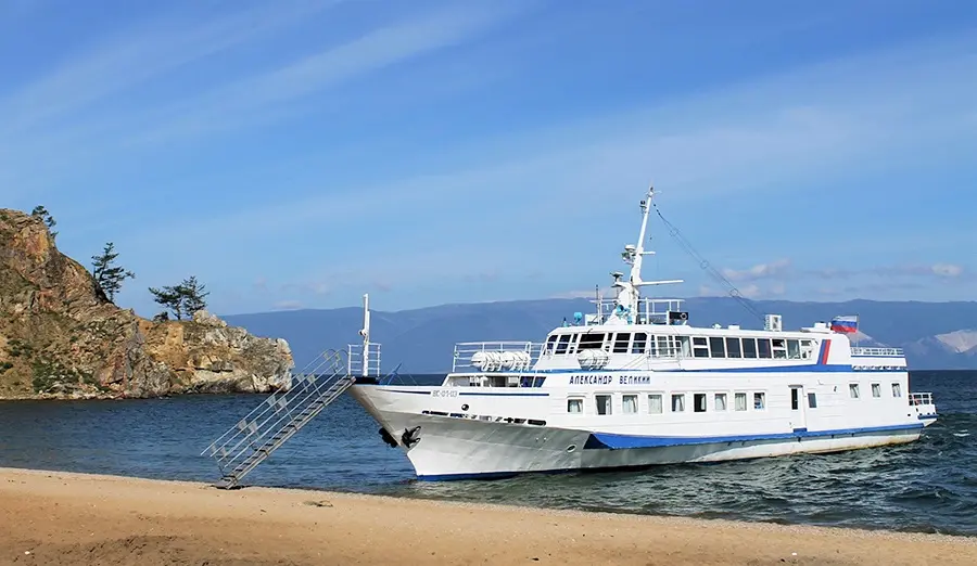 Теплоход «Александр Великий» — комфортабельное двухпалубное судно проекта 10110, построенное в Германии. Его компактные размеры и малая осадка позволяют причаливать практически в любой точке Байкала, что является ключевым преимуществом.