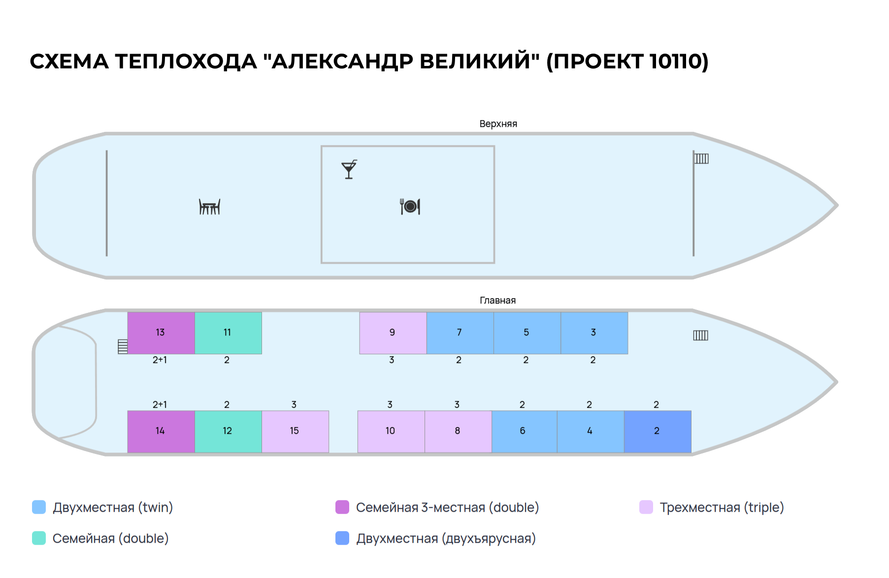 Тип каюты Размещение Базовый тариф question-icon Расширенный тариф question-icon