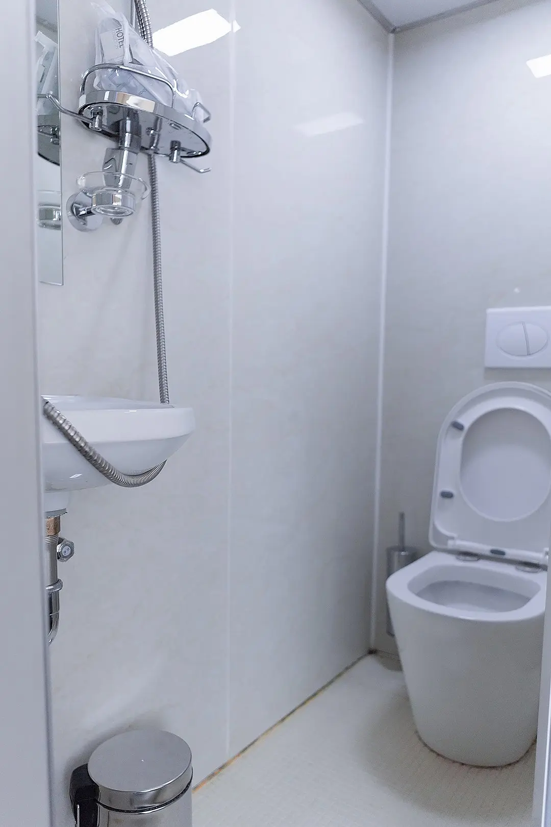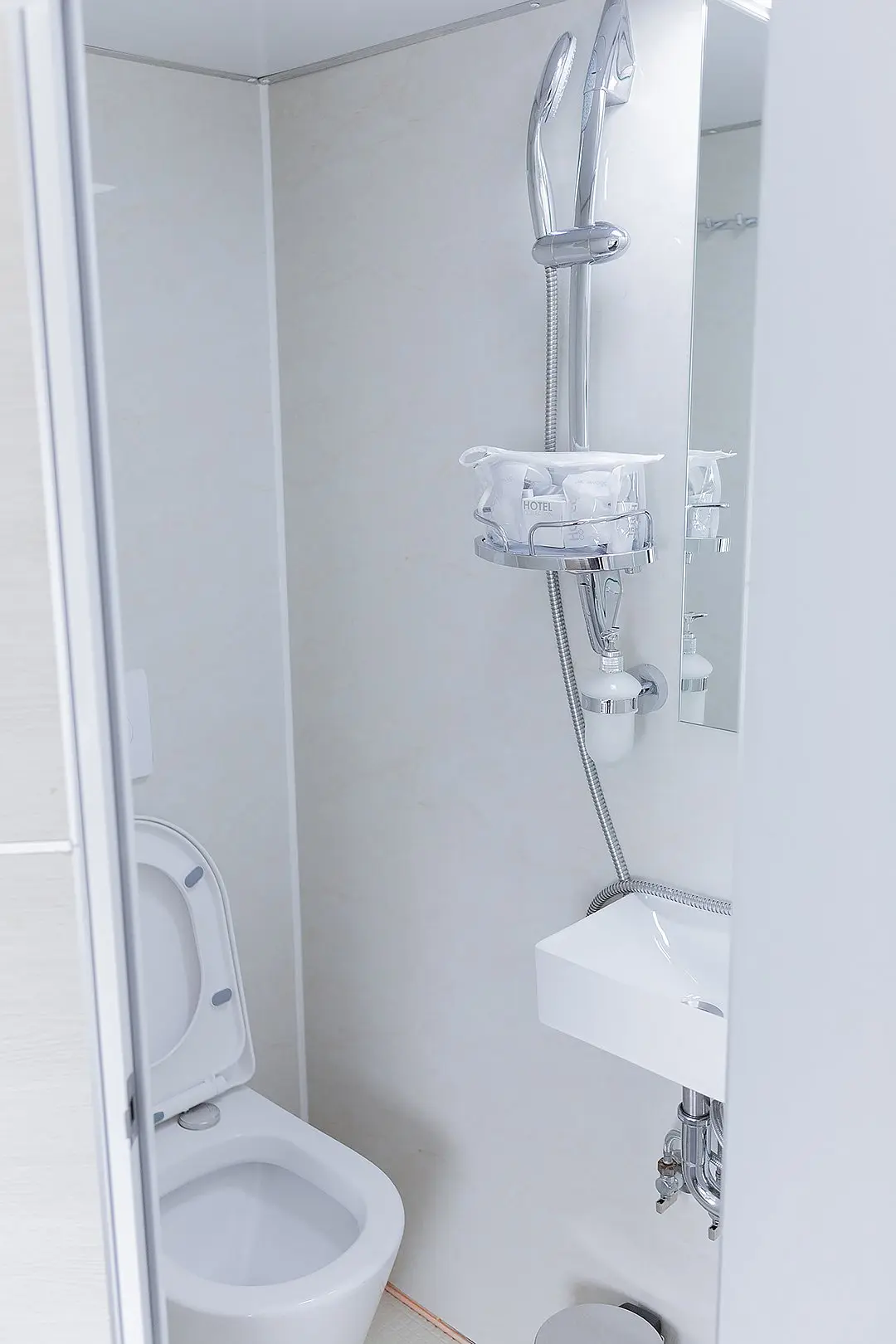 В каюте имеются: Шкаф для одежды , Столик , Электророзетка , Туалет , Душ , Умывальник с холодной/горячей водой , Двухъярусная кровать , Зеркало , Фен , Обзорные окна ;