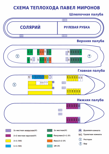• 40% – скидка на места верхнего расположения в каютах на нижней палубе (не суммируется с другими скидками).
