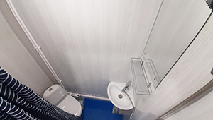 В каюте имеются: Иллюминатор , Электророзетка , Телевизор , Кондиционер , Туалет , Душ , Умывальник с холодной/горячей водой , Двухъярусная кровать , Зеркало ;