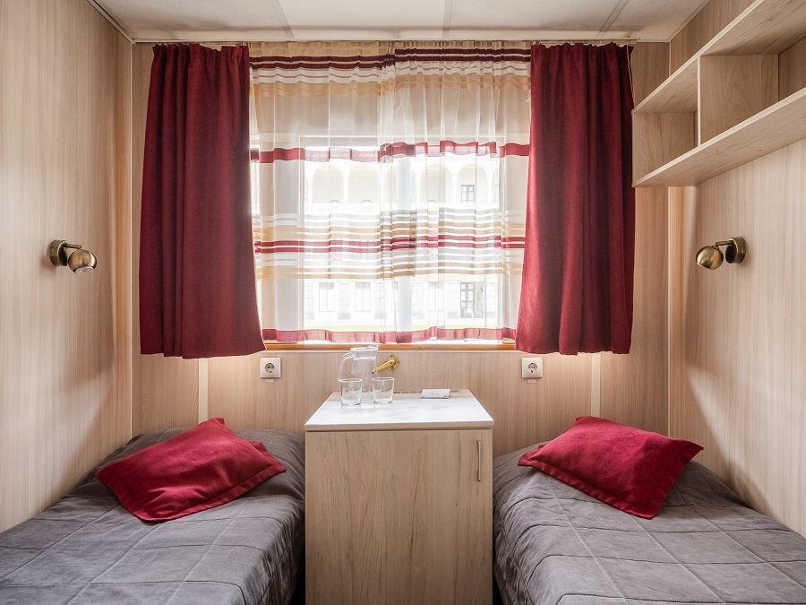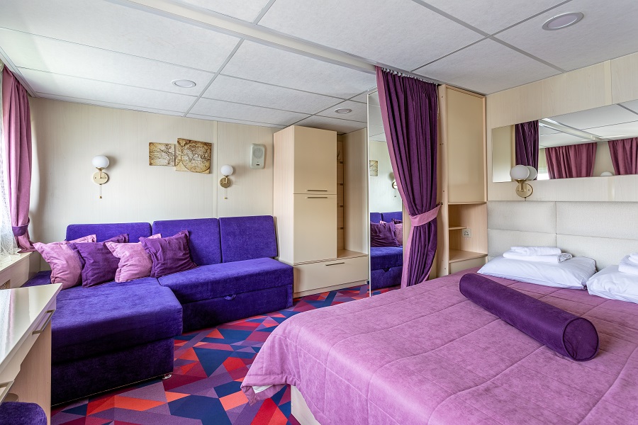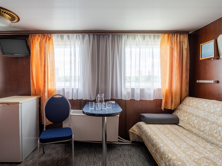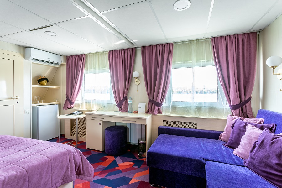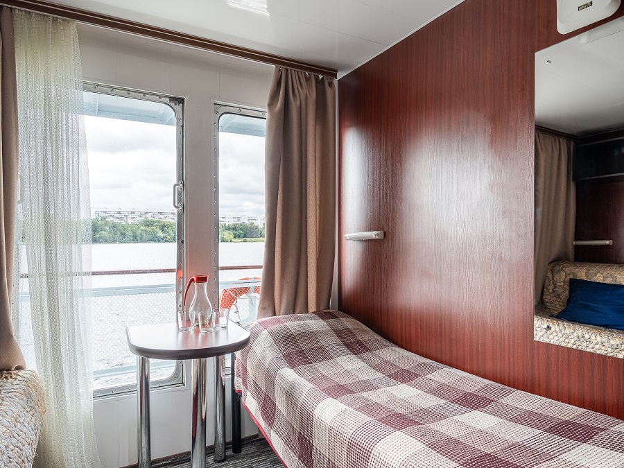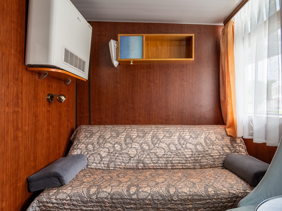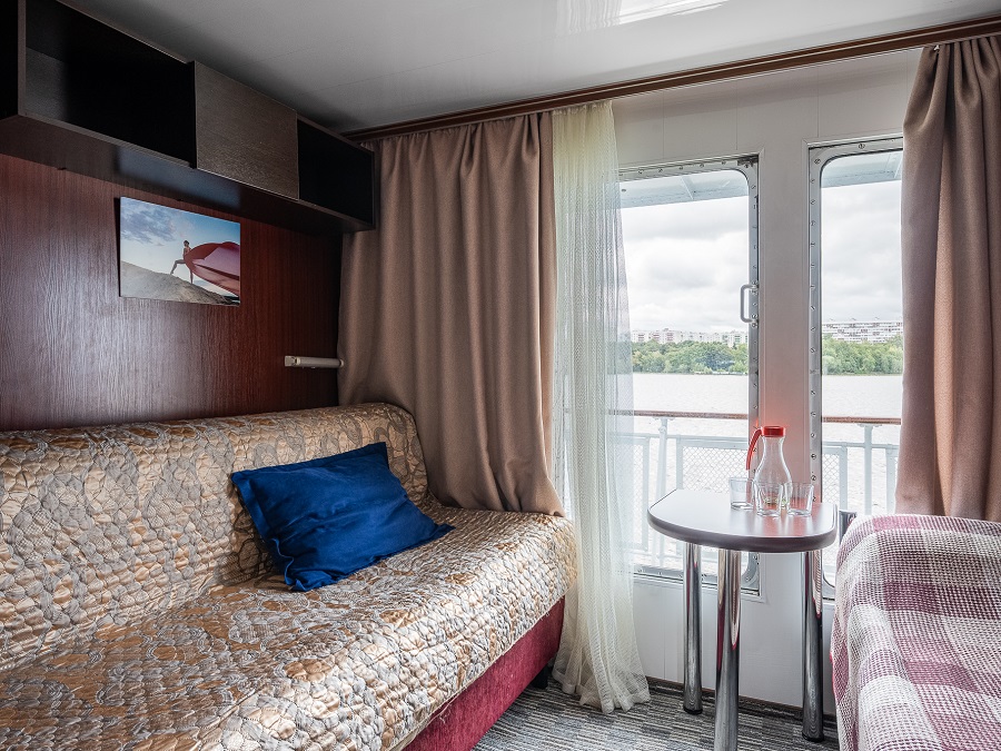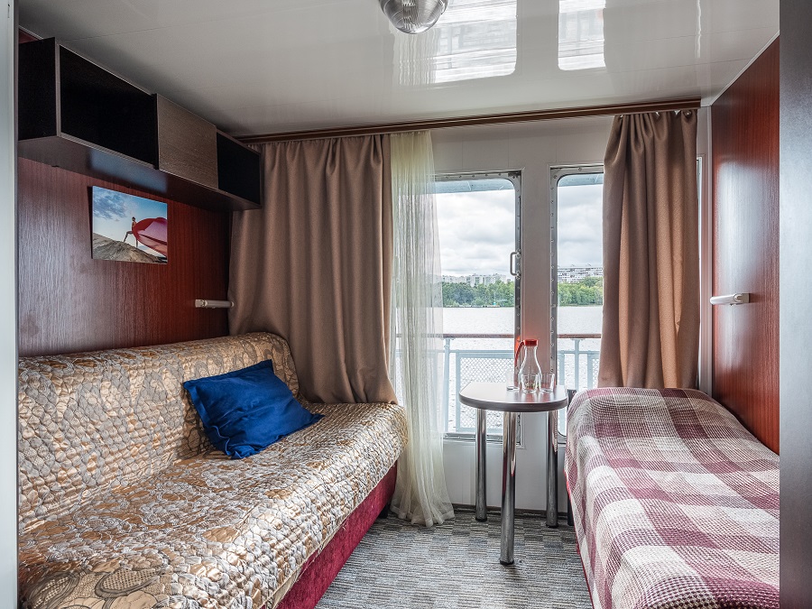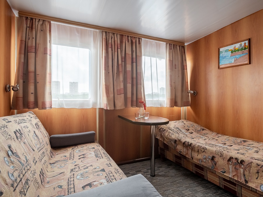 - В каюте № 305 отдельный выход на палубу и окна на обе стороны. В каюте двуспальный диван и односпальная кровать.