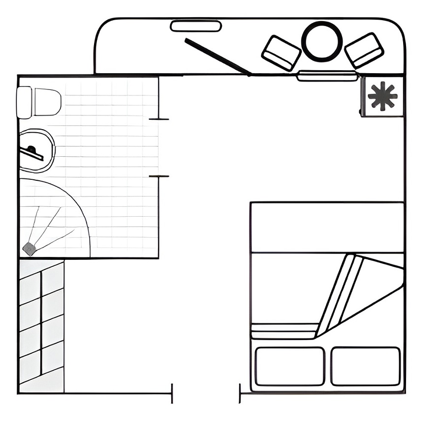 - Возможно размещение 3-го и 4-го человека на дополнительном месте – раскладной диван.
