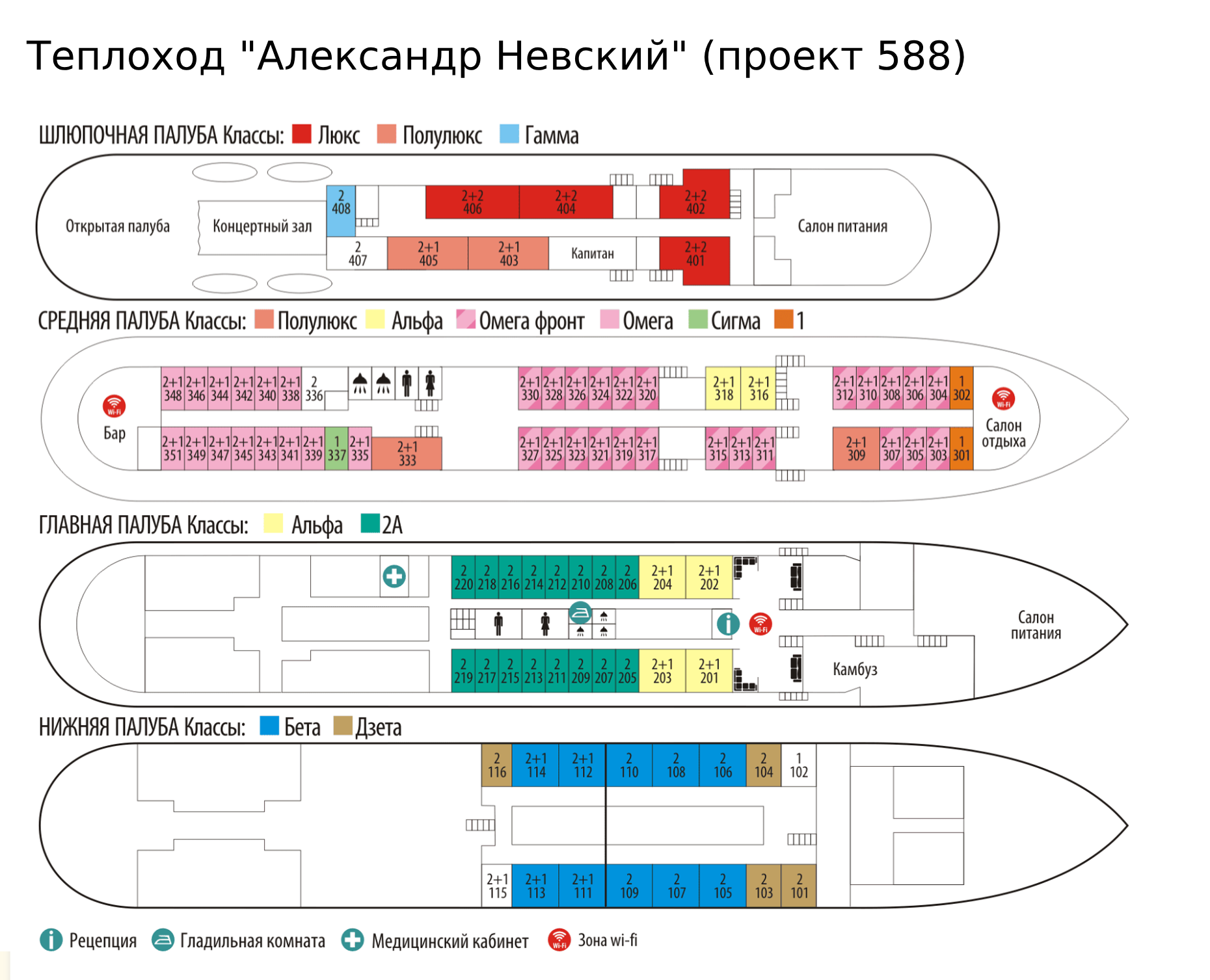 - некоторые экскурсии в городах остановок (наличие или отсутствие включенного экскурсионного обслуживания в стоимость того или иного круиза на данном теплоходе уточняйте у наших менеджеров).