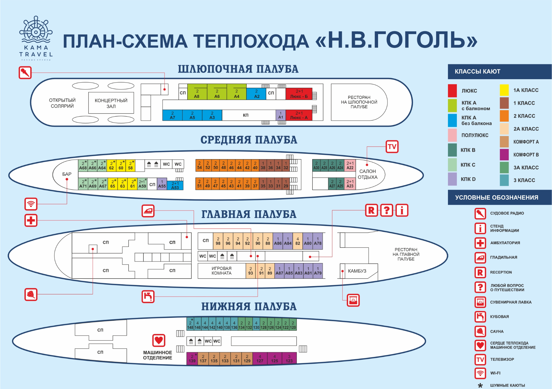 Каюты №: 130, 136, 138, 140, 142, 144, 146
