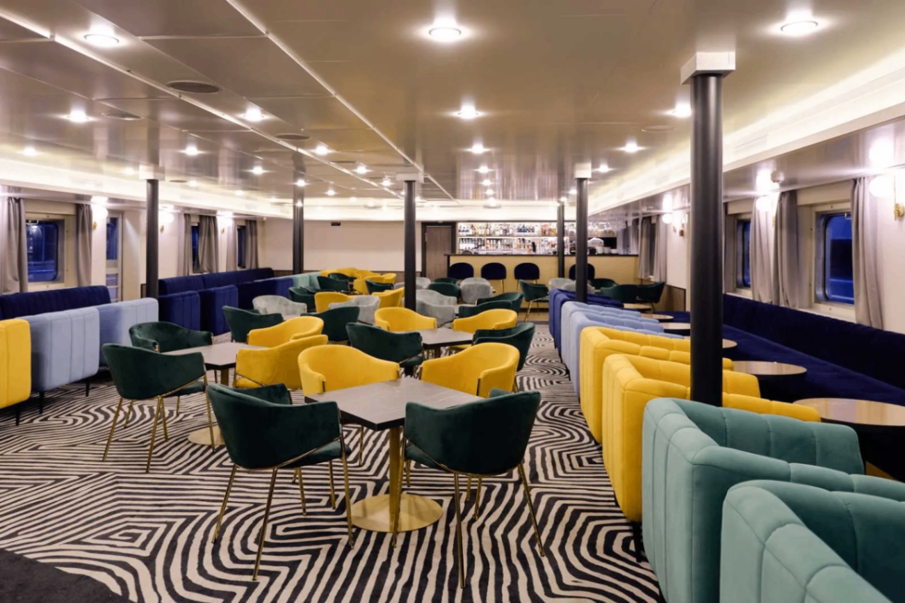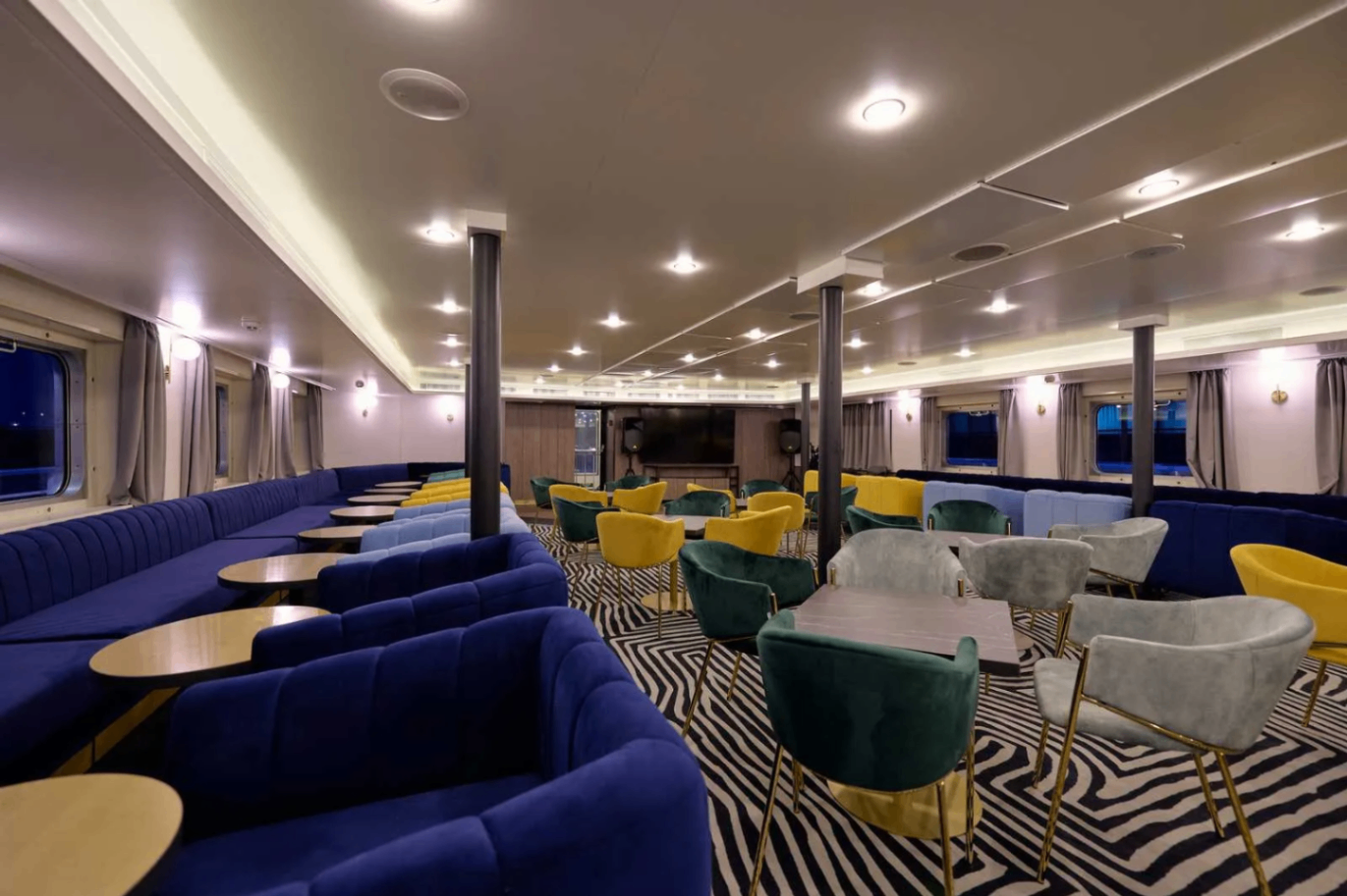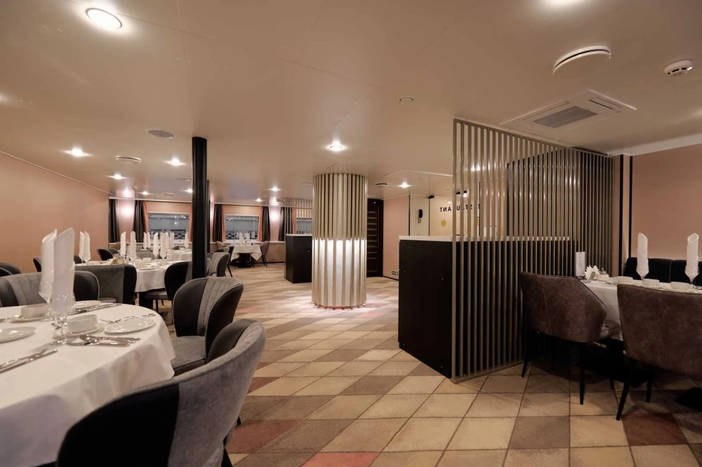 На борту пассажиров также ждет множество площадок для проведения досуга – от традиционного ресторана и бара с панорамным остеклением и танцполом до салона красоты и лектория. На солнечной палубе также предусмотрены места для загара и еще один небольшой бар.