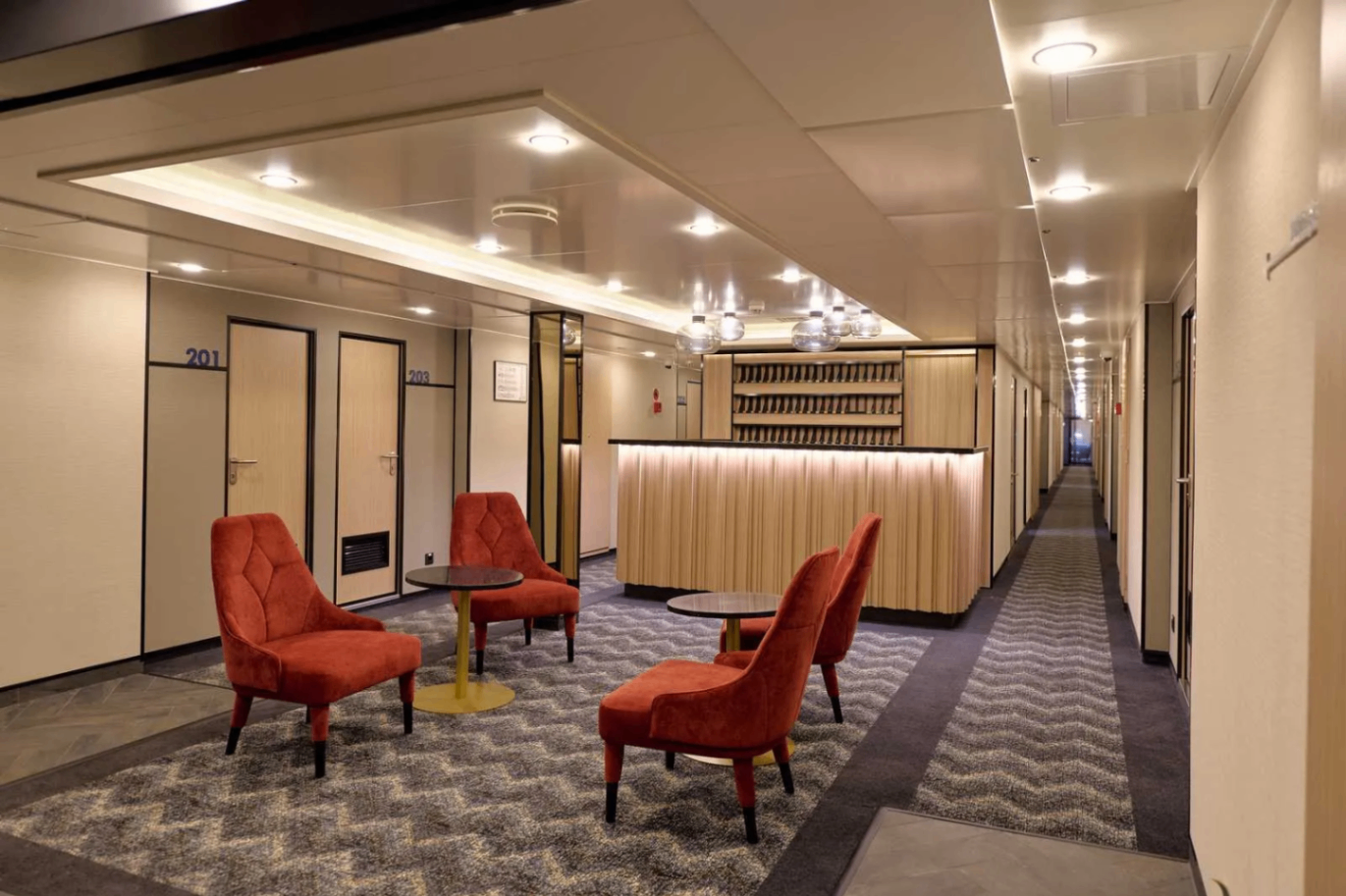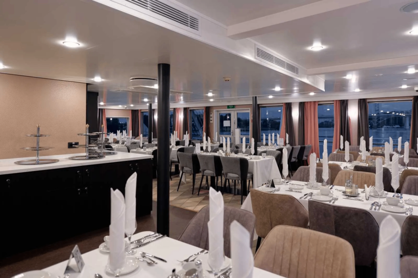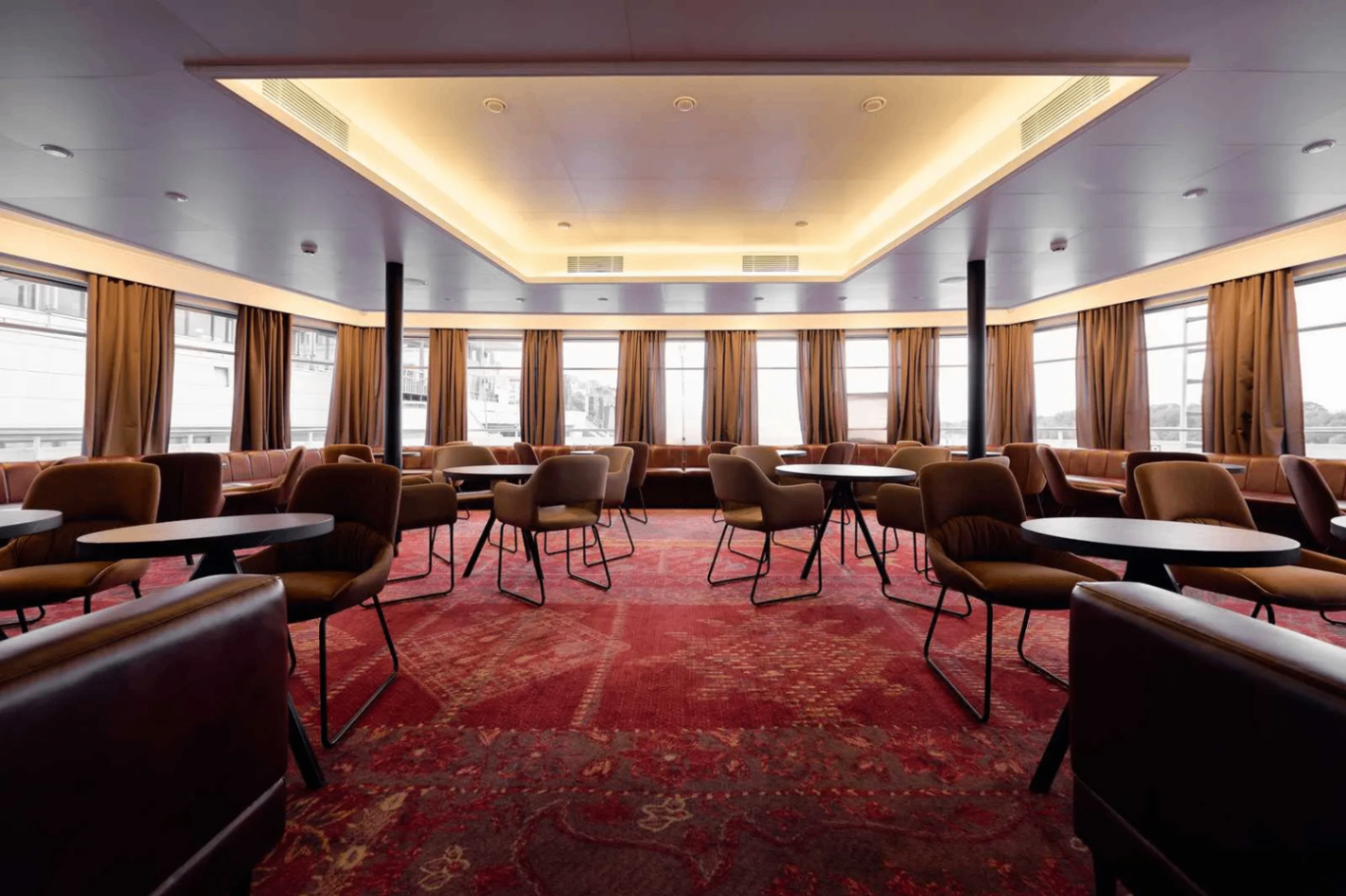 На борту пассажиров также ждет множество площадок для проведения досуга – от традиционного ресторана и бара с панорамным остеклением и танцполом до салона красоты и лектория. На солнечной палубе также предусмотрены места для загара и еще один небольшой бар.
