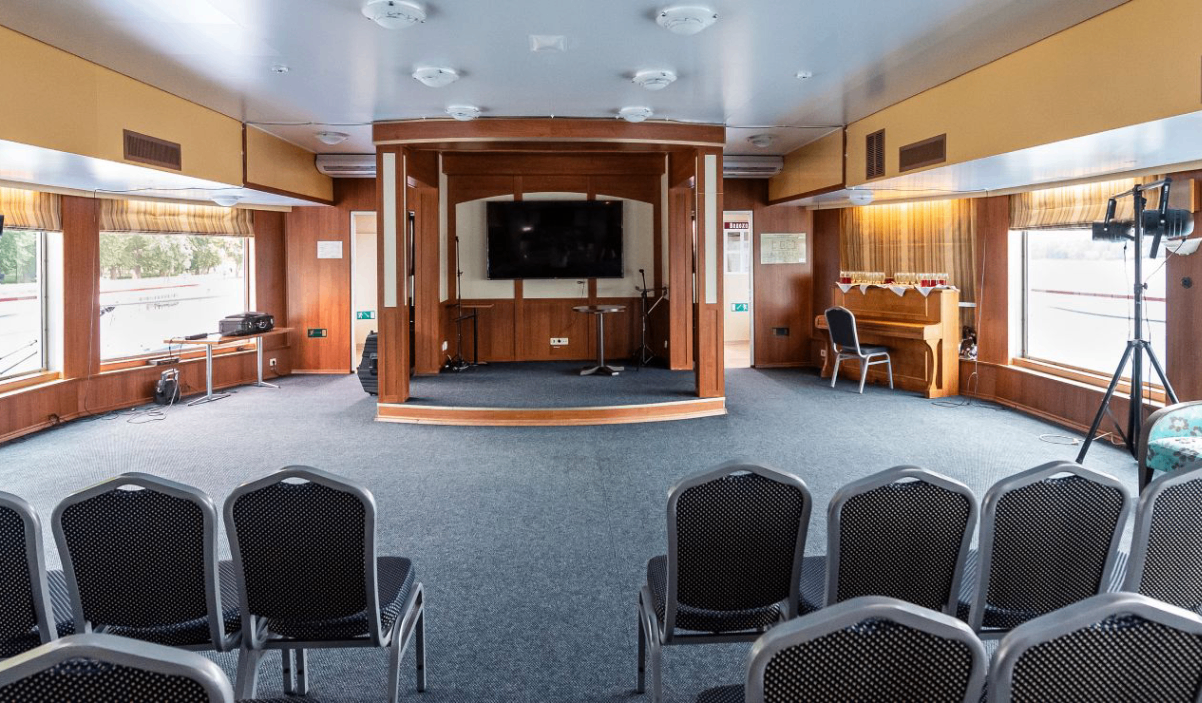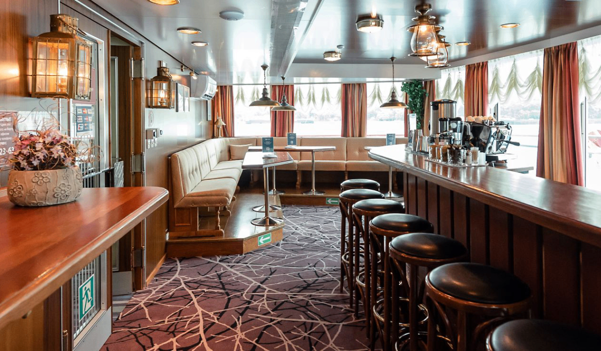 На главной палубе теплохода расположена стойка с информацией. Здесь ответят на все возникающие вопросы по организации круиза, так же здесь можно приобрести экскурсии в городах остановок.
