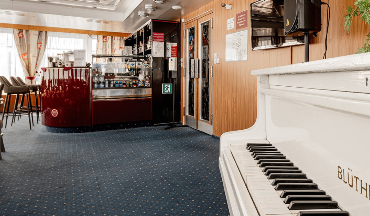 На главной палубе теплохода расположена стойка с информацией. Здесь ответят на все возникающие вопросы по организации круиза, так же здесь можно приобрести экскурсии в городах остановок.