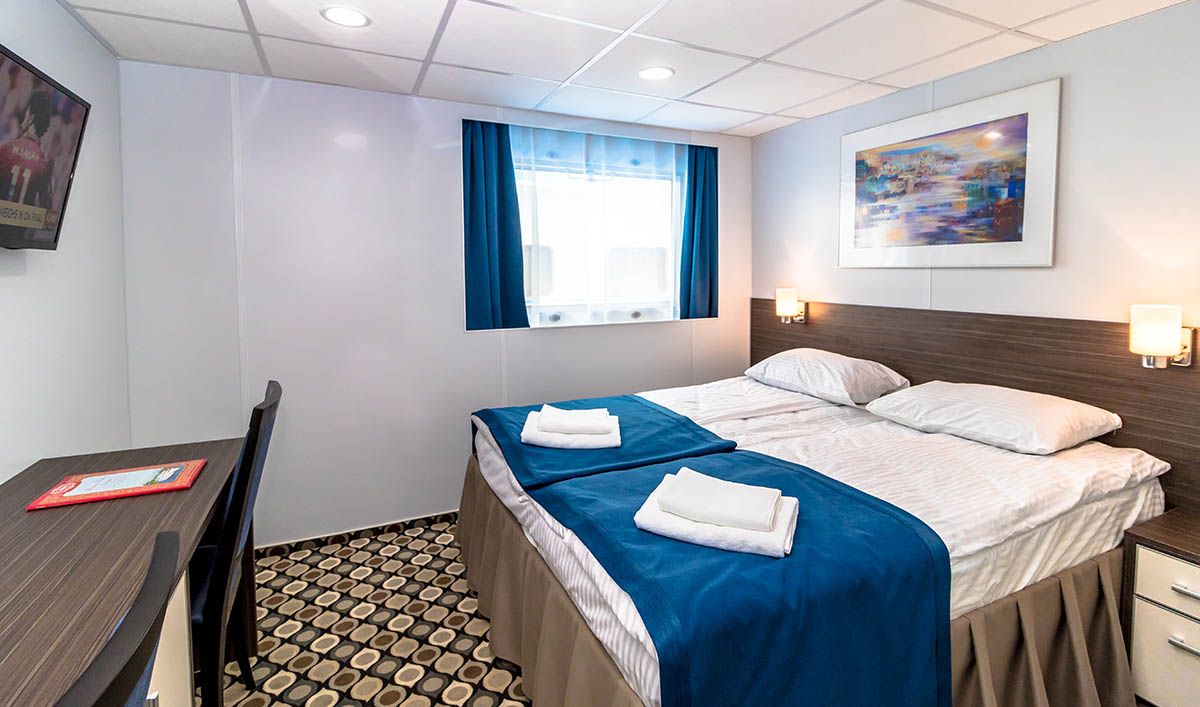 - В каютах 347-350, 403, 405-409, 412, 414, 419-422 - двуспальная кровать.